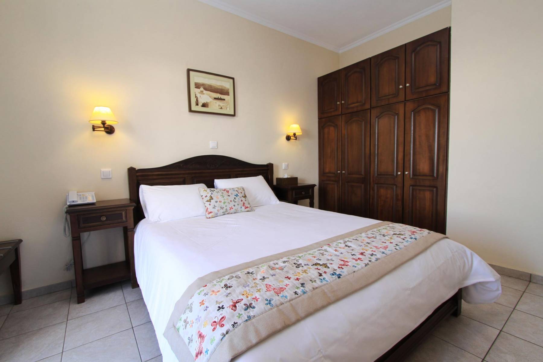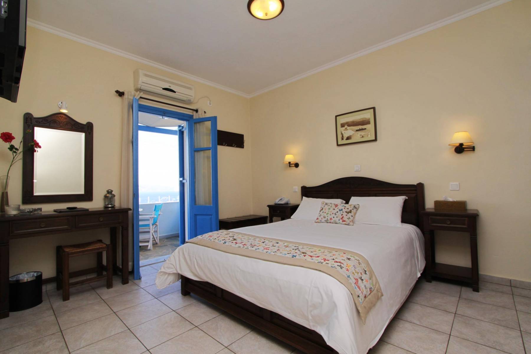 Is located next to the pool and you can enjoy your breakfast or at the evening your drink watching the surrounding islands and the unique sunset of Oia village.
